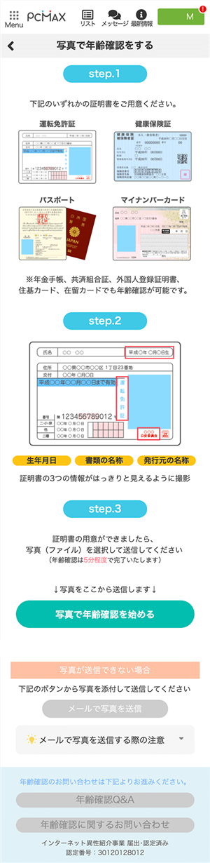 PCMAXなどのマッチングサイトを使うときは、年齢確認をする必要があります。